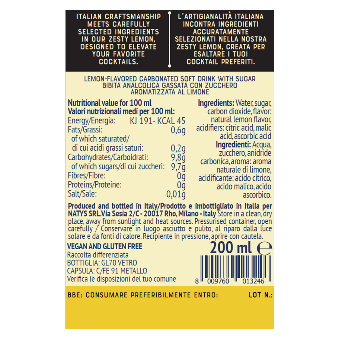 Zesty Lemon Soda Naty's 200 ml